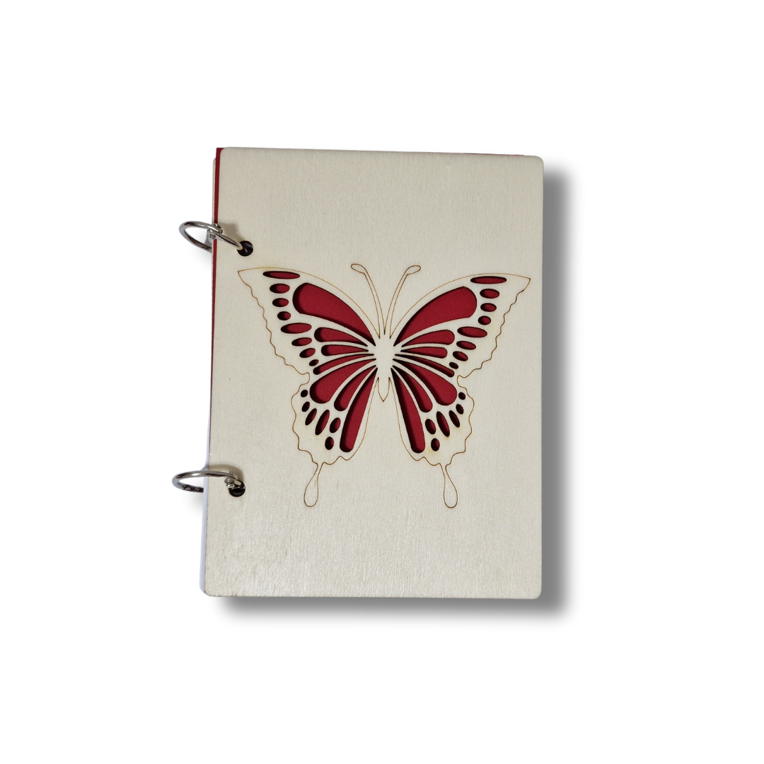 Carnețel reîncărcabil cu coperte din lemn, model fluture - A6