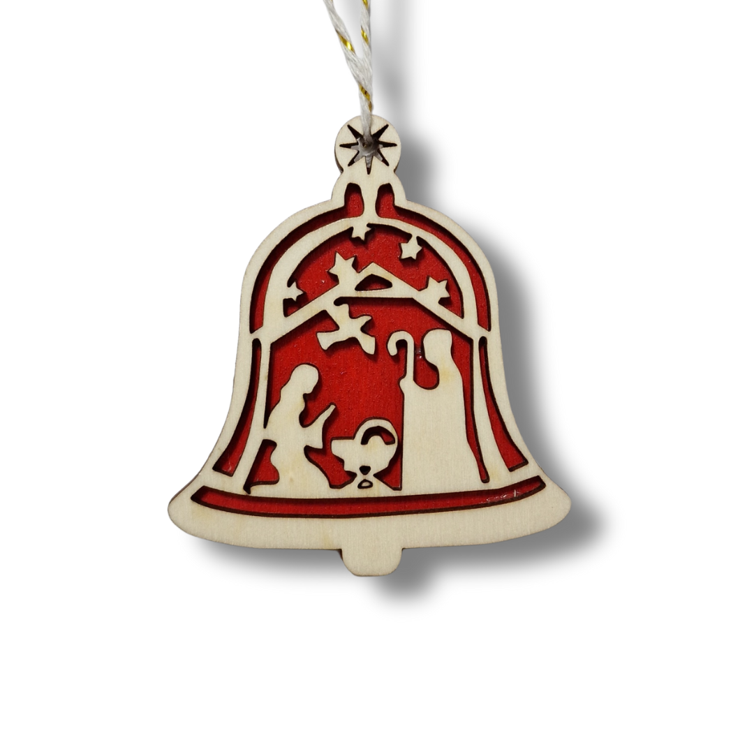 Glob de Crăciun - clopoțel din lemn cu nașterea Domnului